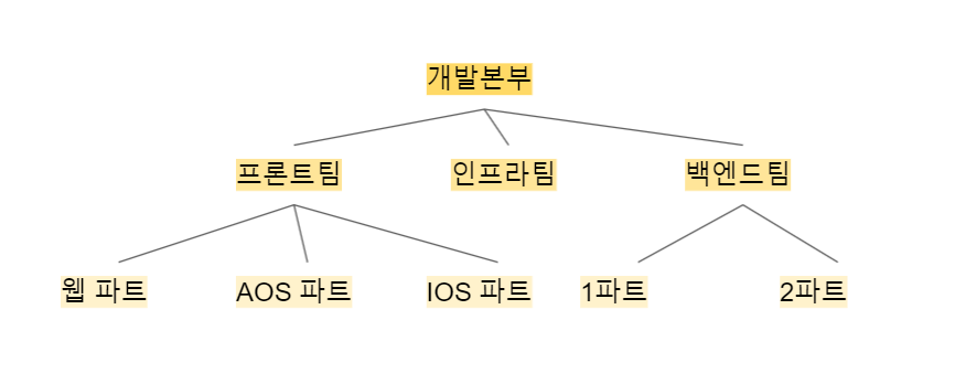 '개발본부'의 코드인 'develop_division'을 상위부서로 갖는 부서들을 찾는다.