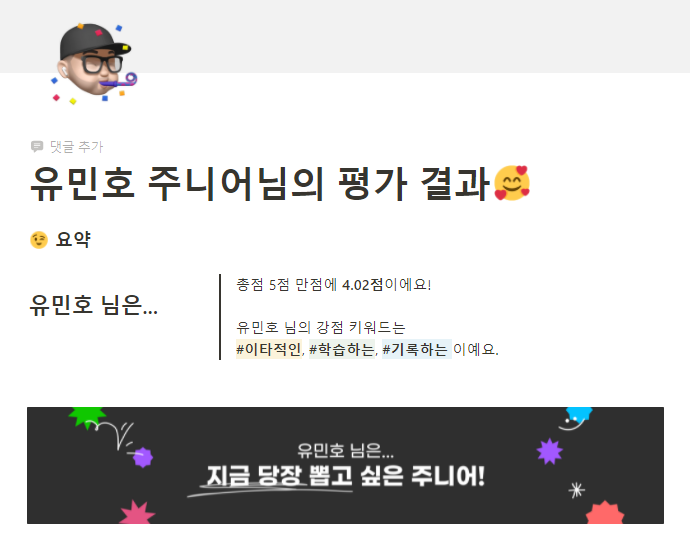 페이스북을 돌아다니다 '주니어의 포트폴리오를 시니어가 평가해줍니다'라는 타이틀로 이색 프로젝트를 진행하고 있어 참여해보았는데, 네카라쿠배 혹은 유망한 스타트업 시니어들이 평가해주고 피드백해주셔서 어떻게 하면 더 잘할 수 있을지 고민해보는데 도움이 되었다.