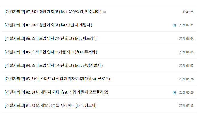 | [개발자회고] #7. 2021 상반기 회고 ( feat. 3년 차 개발자 ) (3) | 2021.07.21 |
