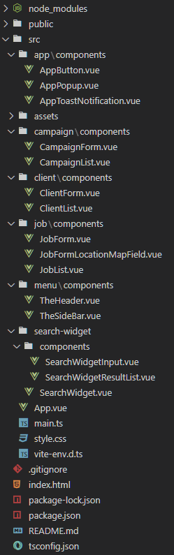 이 방법은 src 바로 하위 레벨의 components를 제거하고, src 바로 하위 레벨에 기능 단위로 폴더링을 하고 그 폴더 안에 components를 개별적으로 폴더링하는 방법이다.