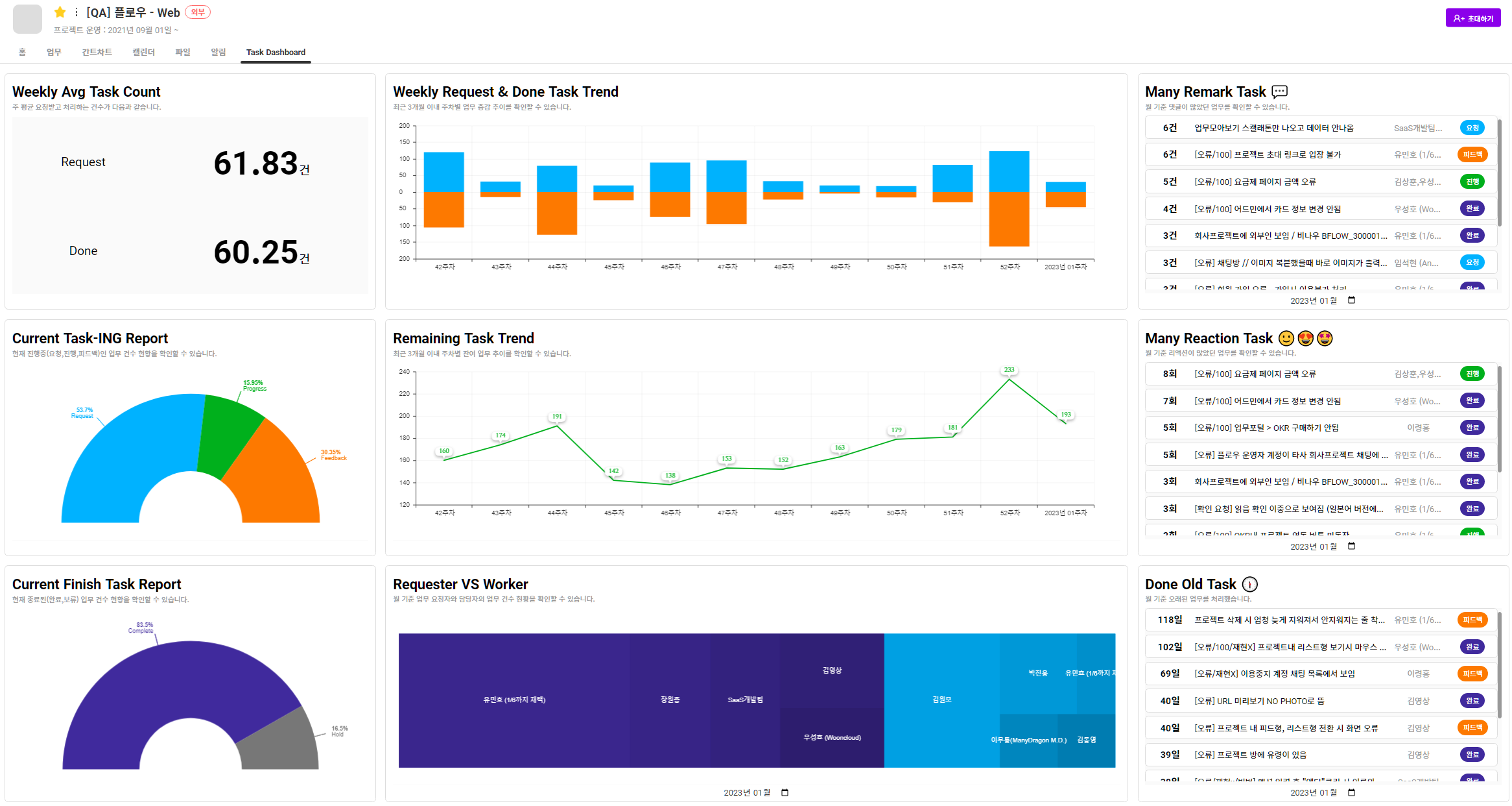 이것도 경영진의 평이 매우 좋았다. 하지만 업무 대시보드는 심혈을 기울여 출시하고자 하는 기능이기 때문에 좀 더 디벨롭돼서 출시될 것 같다. '워커보드'와 '프로젝트 업무 대시보드'가 합쳐지면 '주간 보고'를 대체할 수 있을 것 같다. 내년 상반기 끝 무렵까지 디벨롭되지 않는다면 혼자서 '주간보고서'를 기능을 고민해 봐야겠다.ㅎㅎ
