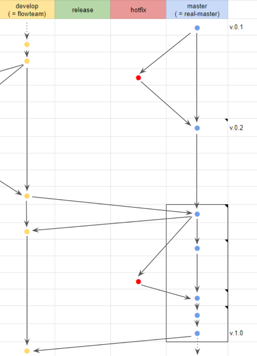 develop은 하나인데, master는 여러 개라는 이야기를 듣고 이런 전략이 어떨까 얘기를 했다.