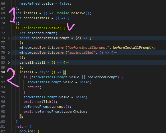6. 설정에 installPrompt를 true로 설정해줘야 hideInstall이 false가 되겠구나.