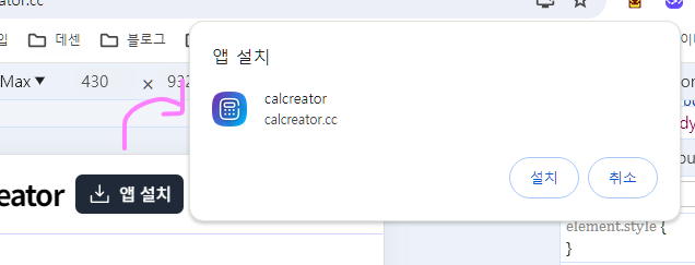 3. 헤더에 아래와 같이 pwa 수동설치 가능한 버튼 생성